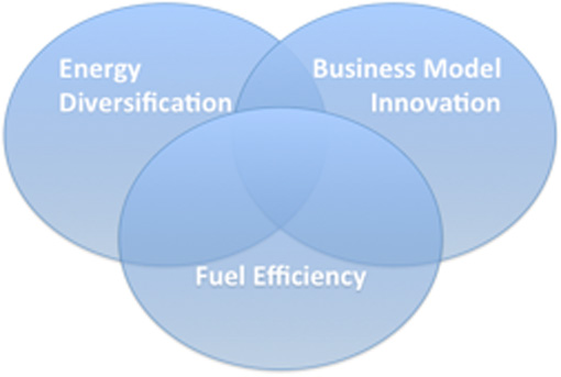 Based on an assessment of the World Energy Issues Monitor 2014, energy efficiency is the highest impact energy action item facing energy leaders today.  Business model innovation in combination with technology innovation creates more competitive differentiation than technology innovation alone.  Both on the supply as well on the demand side, increasing fuel diversification offers opportunities for new customer value propositions and new value chains.  In combination, the three drivers in this nexus offer new business model opportunities for the industry.