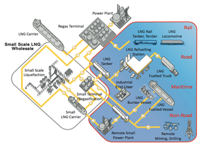 Among these, the dilemma of the ‘chicken and egg’ situation between initial lack of infrastructure and committed market size for the new fuel causes perhaps the biggest challenge in market development. Customers are unlikely to adopt a new fuel unless they are convinced it is backed up by sufficient infrastructure to provide flexibility, diversity, range, resilience and competition in fuel access. Suppliers are unwilling to invest in costly new fuel infrastructure unless they are convinced of a critical mass in early market size. This dilemma has been a very noticeable impediment in the development of LNG as transportation fuel.